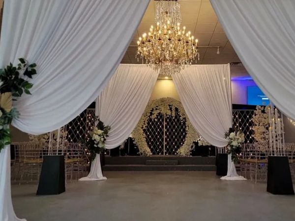 A luxury grand ballroom suitable for 500 guests, a dance floor to accommodate your entire party, antique gold and crystal chandelier with customizable dimming, high ceilings, and a large stage to accommodate any ceremony or DJ setup. 3 72 inch TV's located in the ballroom that are perfect to display picture slideshows, wedding monograms or videos. Your guests will love this space!